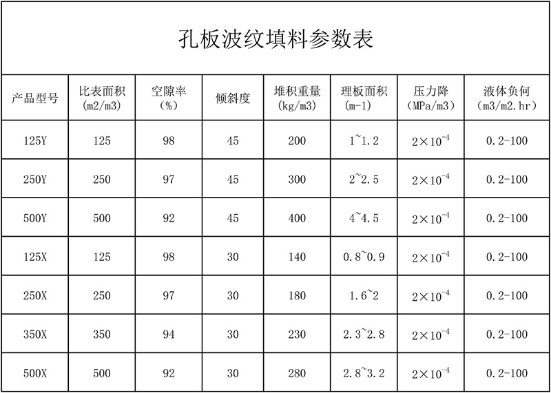 孔板波纹填料有环形波纹、丝网波纹、网板波纹、孔板波纹、压延刺孔波纹,其特点如下: