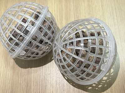 采用聚丙烯(PVC)塑料制成球状,由两个半球合成一个球形,每个半球上开有12个半扇形叶片,两个半球的扇形叶片相互错开。该填料特点是比表面积大,空隙率较高。但是由于叶片数偏多,彼此间有遮蔽效应,不利于液体分布和润湿;液体大多在球体空心柱聚集,阻碍气体畅通,因此阻力较大。此种填料多用于水处理工程。性能 气速高,叶片多 , 多面空心球填料,阻力小;比表面积大,可以充分解决气液交换;具有阻力小,操作弹性大等优点。 结构 由两个半球合成一个球形,每个半球上开有12个半扇形叶片,两个半球的扇形叶片相互错开,多面空心球的中部沿整个周长有一道加固环,在环的上下各有十二片球瓣。上下球瓣互相交错,沿中心轴呈放射形布置。