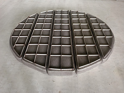 丝网除沫器主要是由丝网、丝网格栅组成丝网块和固定丝网块的支承装置构成,丝网为各种材质的气液过滤网,气液过滤网是由金属丝或非金属丝组成。气液过滤网的非金属丝由多股非金属纤维捻制而成,亦可为单股非金属丝。该丝网除沫器不但能滤除悬浮于气流中的较大液沫,而且能滤除较小和微小液沫,广泛应用于化工、石油、塔器制造、压力容器等行业中的气液分离装置中。