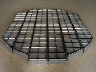 抽屉式除沫器 主要由丝网、丝网格栅组成的矩形条式丝网块代替原来的圆形网块,使用时在塔体外部只需要设置1~N个拆卸口,条型丝网块可直接沿导轨插入(维修时抽出)。